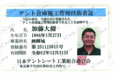 ・認証範囲:テントシートの設計、卸売り、施工及びイベントの管理、運営に係わる活動